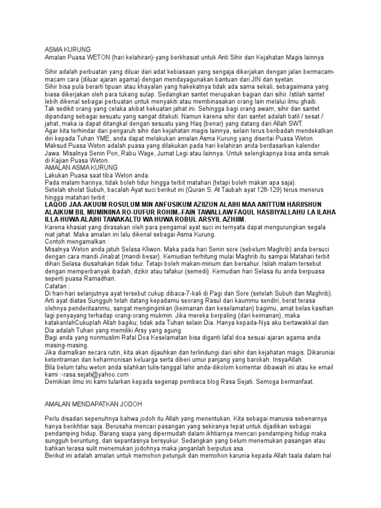 Terdapat juga tulisan arab yang di tanda kurung maksudnya jika pagi hari yang dibaca yang diluar kurung tetapi jika di sore hari di ubah dengan bacaan yang di dalam kurung. Mar 16 2012 - Talak bisa terjadi dari dia telah baligh berakal dan bisa memilih.