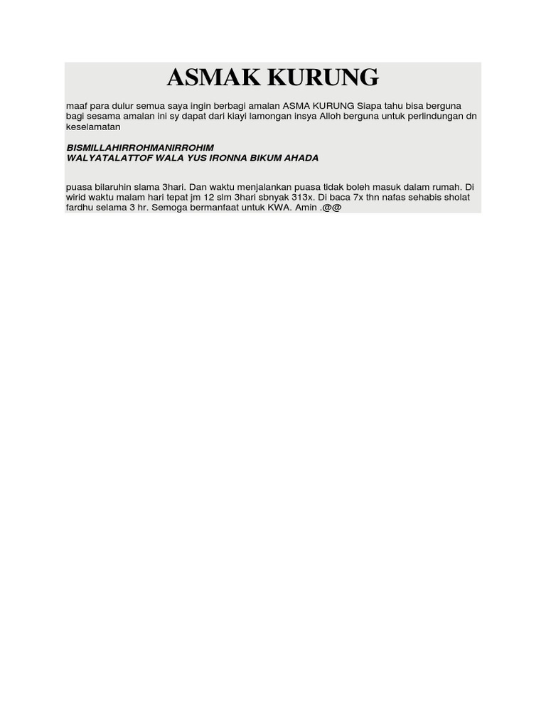 0 Response to "Ayat Asma Kurung"